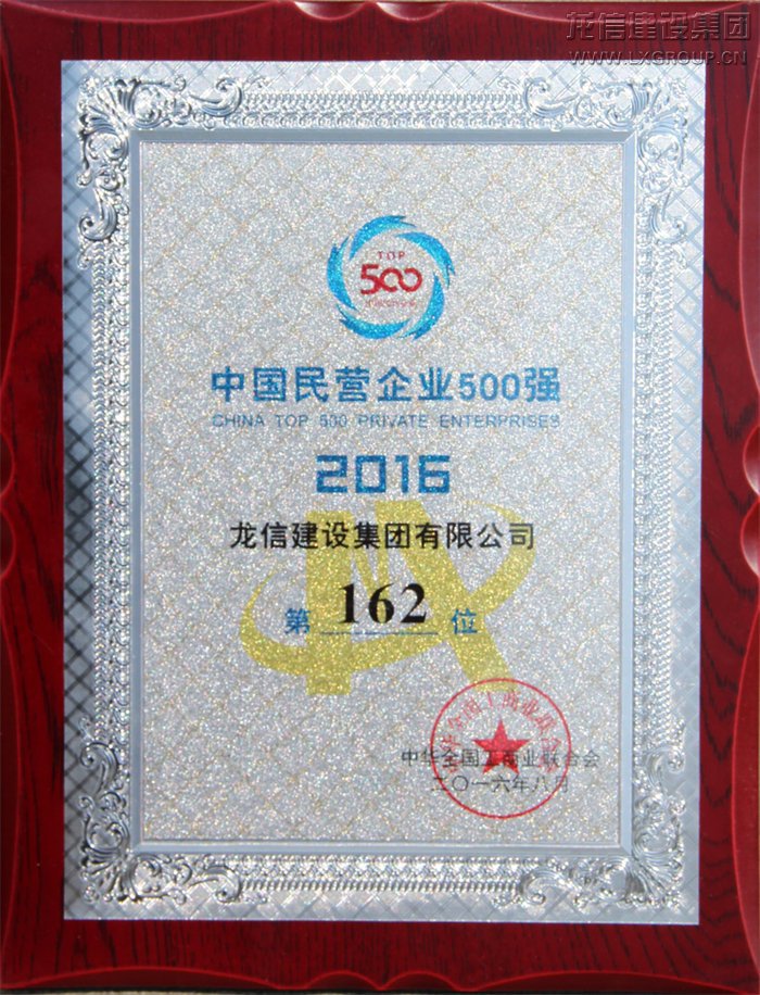 2016年中國民營(yíng)企業(yè)500強(qiáng)162位